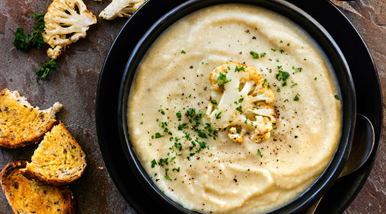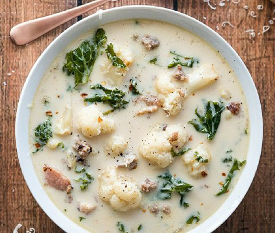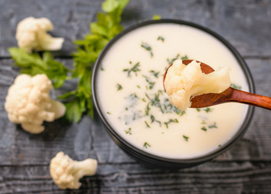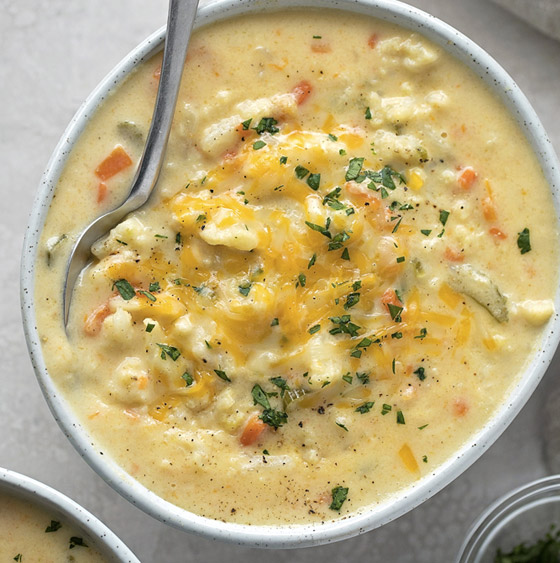 شوربة القرنبيط منخفضة الكربوهيدرات والتي يمكن إعدادها في الوعاء الفوري Instant Pot أو طنجرة الضغط لاختصار الوقت، هي وصفة ستقوم بإعدادها مرارًا وتكرارًا. كما أننا نؤكد أن هذا الحساء اللذيذ هو خيارٌ رائع للأشخاص الذين لا يحبون القرنبيط! حساء القرنبيط هو فكرة رائعة لوجبة العشاء عندما يكون الجو باردًا وتريد طعاماً لا يجعلك تفكر في عدد السعرات الحرارية. وحتى الأشخاص الذين يتجنبون القرنبيط عادة سوف يستمتعون بهذا الحساء اللذيذ! مدة الطهي: 5 دقائق.. مدة التحضير: 25 دقيقة.. الكمية: 6 أشخاص.