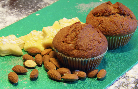 2. امزج نصف كوب من البقان المفروم مع ربع كوب من مُحلّي الفاكهة مونك أو العسل وملعقتين طعام من دقيق اللوز لصنع الطبقة العلوية من الزينة للمافن.