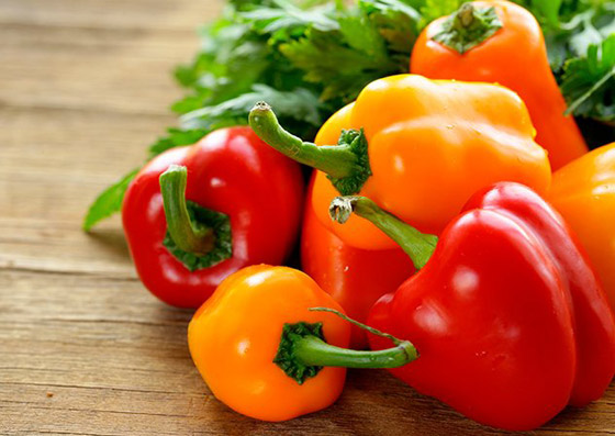 يحتوي الفلفل الأخضر والأحمر على نسبة عالية من فيتامين (A)، كما يعتبر مصدراً جيداً لمضادات الأكسدة والكالسيوم؛ لأنها مصدر للألياف وحمض الفوليك والحديد وقليلة السعرات الحرارية، ويمكن إضافة الفلفل للنظام الغذائي عن طريق إضافته إلى المعكرونة والسلطات وما إلى ذلك.