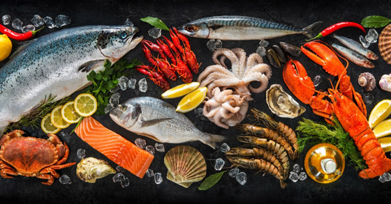 تعد الأسماك، مثل الماكريل والرنجة وثعبان البحر والسلمون والتونة، مصدراً غنياً بأحماض أوميغا 3 الدهنية، تعتبر المأكولات البحرية أيضاً مصدراً ممتازاً لفيتامين A، ويمكن أن تساهم بشكل كبير في صحة الشبكية.