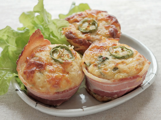 6. قسّم المزيج بين أكواب المافن وغطها بالجبن المتبقي وشريحة هالبينو.
