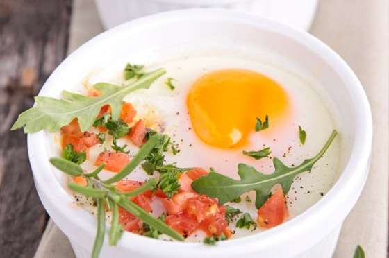 * طريقة التحضير: ضع رذاذاً من الزيت في كوب صغير، ثم رشّ القليل جداً من الملح والفلفل واكسر البيضة داخل الكوب، بعد ذلك قم بتغطيته وضعه في الميكروويف حوالي 50 ثانية، ثم أخرجه وانتظر بضع ثوان قبل أن ترفع الغطاء، وإذا أحسست أن البيض لم ينضج بعد إلى الحد الذي ترغب فيه، أعده ثانية، وشغل 10 ثوان إضافية في الميكروويف.