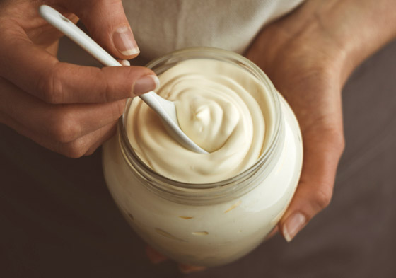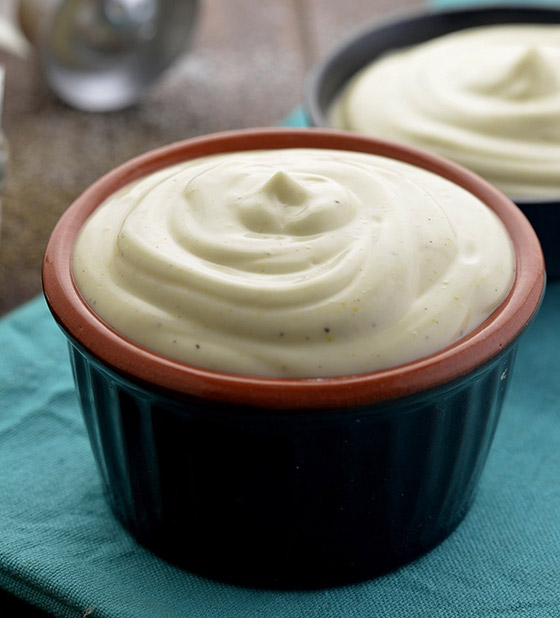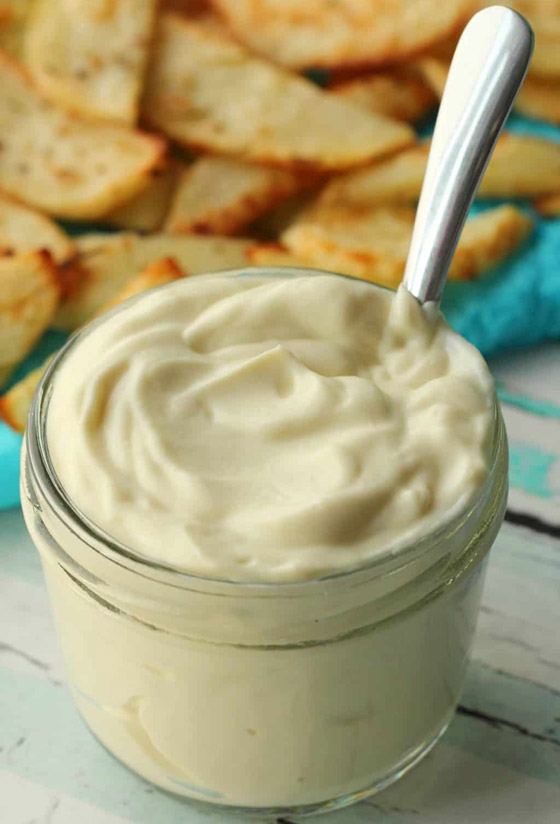 المايونيز إضافة رائعة للكثير من السلطات ولذيذ جداً مع العديد من أطباق الدجاج والبطاطس. لا داعي أن نخبرك أن تلك الخيارات المتعددة في السوق ليست الأفضل لكِ ولعائلتكِ بما فيها من مواد حافظة وإضافات لا داعي لها. لذلك، سنقدم لكم وصفة بسيطة وسريعة التحضير ولذيذة جداً، كما أنها خالية من البيض لذلك لا داعي للقلق من أي حساسية أو طعم غير مرغوب. سوف تحصلون على مايونيز كريمي وسلس ومثالي للدهن على الخبز للسندويشات أو إضافته إلى السلطات. يمكنكم تحضيره في أقل من دقيقتين ويمكن طهيه بالطريقة التي تريدونها.