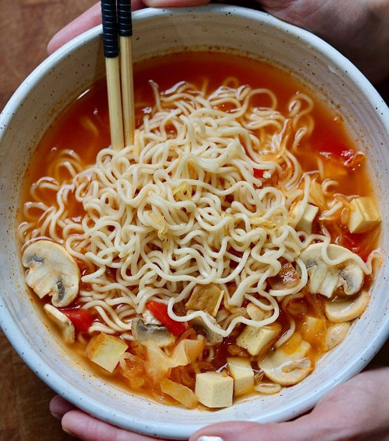 حتّى رواد الفضاء بإمكانهم الاستمتاع بوجبات النودلز الساخنة، لِمَ لا ما دامت هذه الوجبة مصنوعة بطريقة تتناسب مع الأجواء الفضائية، ولا تتطاير في كل مكان. فقد عملت ناسا على صنع Cup Noodles صديق للمركبات الفضائية، مثل أن يطهى بدرجة حرارة 70 مئوية فقط، مشكّلة من كرات تلائم الشوك، موضوعة داخل أكياس نايلون مصنوعة خصيصة لها، بحيث تسهل عملية الأكل دون المخاطرة بخروج أي من المكونات إلى الخارج. ليس ذلك فحسب، بل إنّ لدى رواد الفضاء العديد من خيارات النكهة، مثل النودلز بفول الصويا أو بالكاري أو بالميسو أو بمرق اللحم.