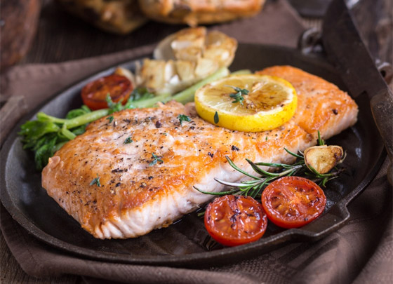 1. الأسماك: بات من المعروف أن الأسماك تحتوي على أحماض أوميغا 3 ذات الفوائد المدهشة، والأوميغا 3 هي مجموعة من الدهون الأساسية التي يجب أن نحصل عليها من الغذاء لأن أجسادنا لا تستطيع إنتاجها. تحتوي الأسماك الدهنية مثل السلمون والتونة على نوعين من أوميغا 3، هما حمض الدوكوساهيكسانويك (DHA) وحمض إيكوسابنتانويك (EPA)، واللذان أثبتا فاعلية في محاربة الاكتئاب، كما تلعب هذه الأحماض دوراً في صحة الدماغ. ويتفق معظم الخبراء على أن الجرعة القياسية من أوميغا 3 للبالغين يجب أن تتراوح ما بين 250-500 ملغ على الأقل. بمعنى آخر، فإن تناول طبق من سمك السلمون (100 غرام) عدة مرات في الأسبوع سيكون كافياً لحصولك على حاجتك من أحماض أوميغا 3.