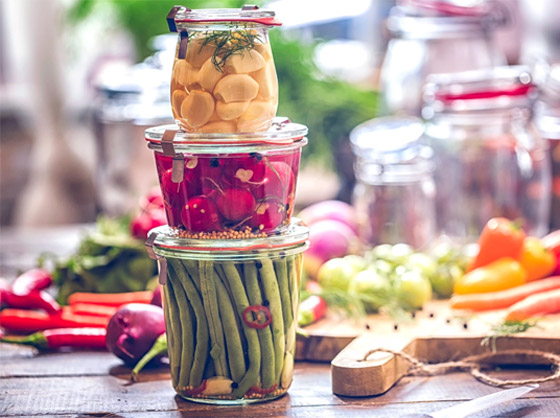 3. الأطعمة المخمرة: تشمل الأطعمة المخمرة الكيمتشي واللبن ومخلل الملفوف، وكلها تسهم في تحسين صحة الأمعاء والمزاج. تسمح عملية التخمير للبكتيريا الحية بالنمو في الأطعمة التي يمكنها بعد ذلك تحويل السكريات إلى كحول وأحماض. خلال هذه العملية، يتم إنشاء البروبيوتيك، وهي كائنات حية دقيقة تدعم نمو البكتيريا الصحية في أمعائك، وقد تزيد من مستويات السيروتونين. مع العلم أن السيروتونين هو ناقل عصبي يؤثر على العديد من جوانب السلوك البشري، مثل الحالة المزاجية والاستجابة للتوتر، والشهية، ويتم إنتاج ما يصل إلى 90% من السيروتونين في الجسم عن طريق ميكروبيوم الأمعاء، أو مجموعة البكتيريا الصحية في الأمعاء. من المهم ملاحظة أنه ليست كل الأطعمة المخمرة هي مصادر مهمة للبروبيوتيك.