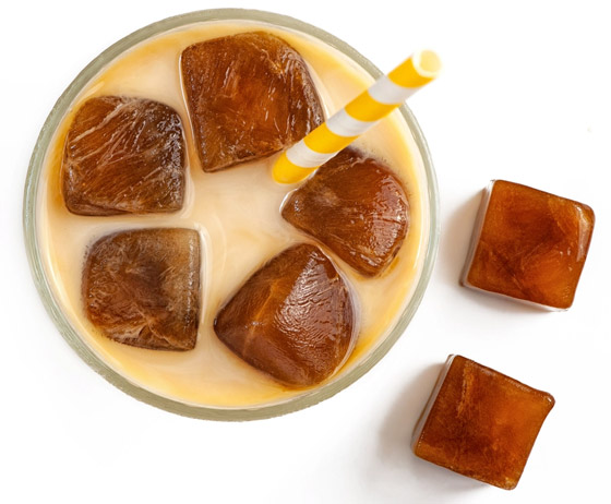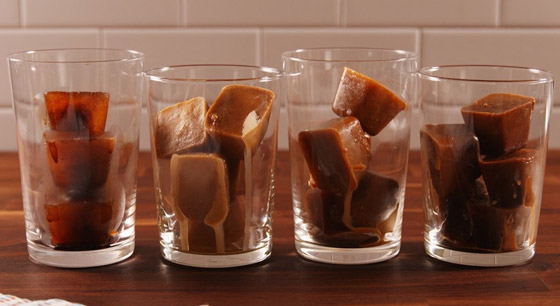 - ولتحصل على نكهة الكراميل ماكياتو، اخلط 240 مل من القهوة المثلجة مع 240 مل من الحليب و60 غم من الكراميل. ثم اخفق المزيج جيداً ثم اسكبه في قالب الثلج.