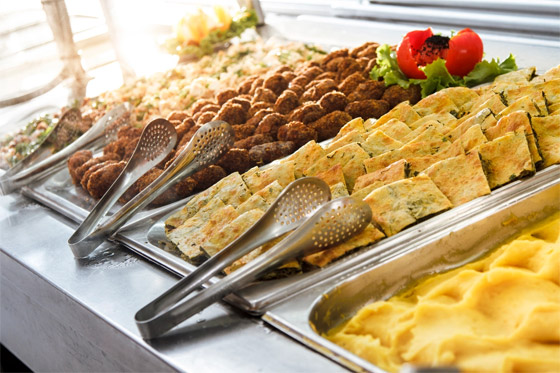 7. جميع أطعمة البوفيه المفتوح: تُعد أطباق البوفيه المتروكة لساعات في درجة حرارة الغرفة أرضاً خصبة لتكاثر الكائنات الحية الدقيقة الخطرة، وفقاً لإدارة الغذاء والدواء. وتتكاثر البكتيريا بسرعة على الأطعمة غير المبردة، على الرغم من أن معظم شركات تقديم الطعام والمطاعم المحترفة تتبع إرشادات صارمة لسلامة الأغذية لمنع الأمراض التي تنقلها الأغذية. ولكن من الواضح أن البوفيهات في الفنادق والحفلات أو التجمعات المنزلية لا تخضع لرقابة صارمة، هذا يعني أن البكتيريا الموجودة في طعام البوفيه يمكن أن تكون بالفعل في مستويات غير آمنة، وإعادة التسخين قد لا تقتل الجراثيم تماماً.