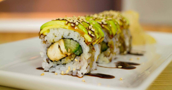 ثمّ قطعي بهدوء إلى عدّة قطع، وقدمي الشوسي بجانب الواسابي ومخلل الزنجبيل والصويا صوص، وصحتين وعافية.