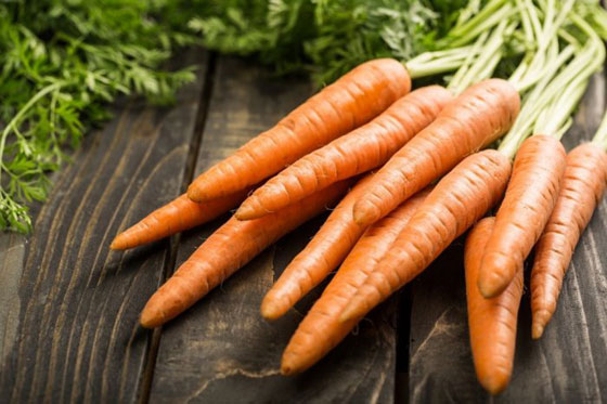 6- الجزر: غني بفيتامين A ومركبات "بيتا كاروتين" وهذه المادة تعتبر من أهم المواد التي تمنح الإنسان صحة أفضل للعيون، فيما يلعب فيتامين A دورًا أساسيًا في تقوية الرؤية، حيث أنه مكون لبروتين "rhodopsin" الذي يساعد شبكية العين على امتصاص الضوء.