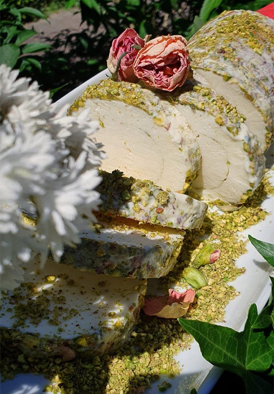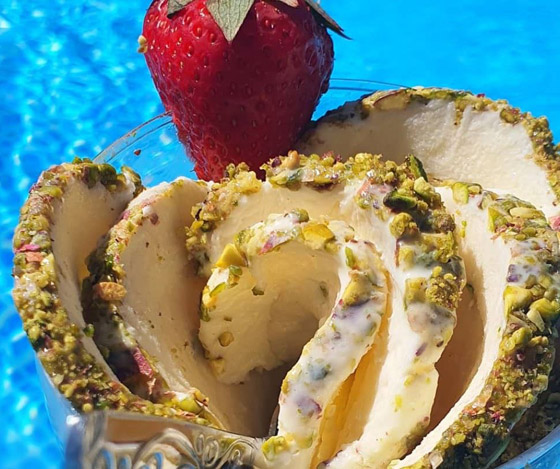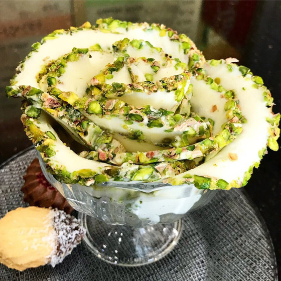 10- قوموا بلف البكداش، ثم أضيفوا عليها الفستق الحلبي.