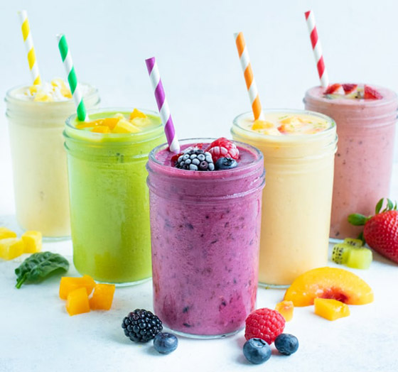 بالإمكان إضافة القليل من عصير البرتقال أو أي عصير طبيعي عند تحضير مشروب سموذي سريع لضمان التحلية وتخفيف القوام بعض الشيء. ولكن ما يصل إلى كوب واحد من الفاكهة الكاملة سيمنحك نفس الحلاوة بالإضافة إلى الحجم والألياف الغذائية التي يحتاجها الجسم، خاصة إذا حافظت على القشرة واستخدمتها أيضاً بالصورة السليمة.
