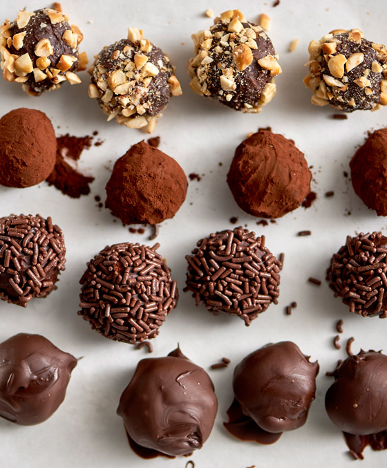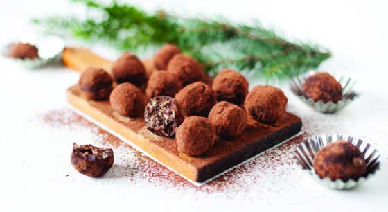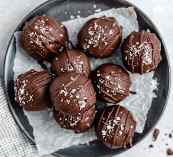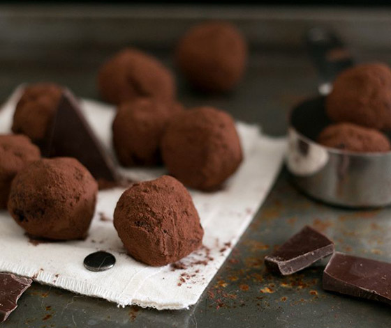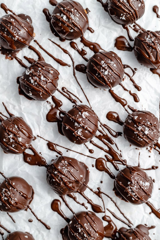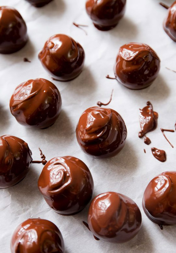 5. ضعوا كرات الشوكولاتة على ورق النايلون، وهي تبرّد لنحو ساعتين. وبعد انقضاء الوقت المذكور، أخرجوها من البرّاد، وضعوها جانباً، أثناء إعداد الشوكولاتة الذائبة.