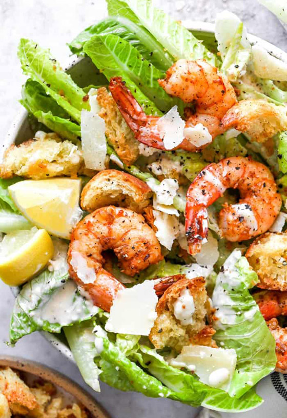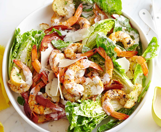 سلطة السيزر بالروبيان... لا تفوتوا فرصة تعلم طرق عمل وصفات سلطة السيزر والتي تناسب جميع الأذواق، جربوها بطعم الروبيان الشهي والغني بالفائدة الصحية. وقت الطهي: 30 دقيقة.. يكفي ل: 4 أشخاص.