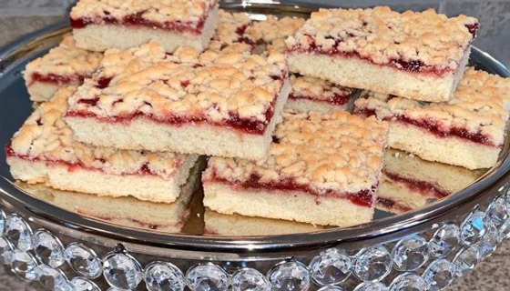 - يتم بشر بقية العجينة فوق الصينية حتى يتم تغطية طبقة المربى.
