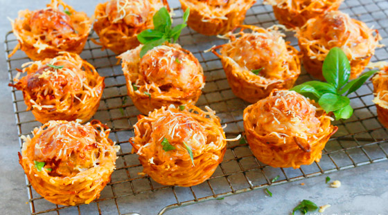 كب كيك الباستا بالجبنة... قدموا على سفرتكم وصفة مبتكرة من وصفات الباستا الرائعة، شكلوها على شكل الكب كيك وقدموها ساخنة على سفرتكم. وقت الطهي: 60 دقيقة.. يكفي ل: 4 أشخاص.