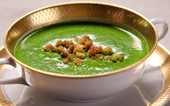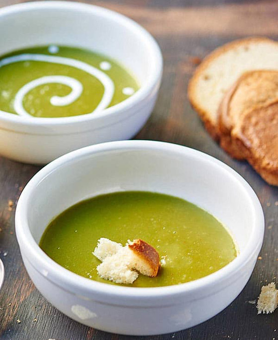 3- استخدموا الخلّاط لهرس الحساء ليصبح ناعماً، ثمّ قلّبوا الكريمة، وزيّنوها بمزيد من الخبز المحمّص.