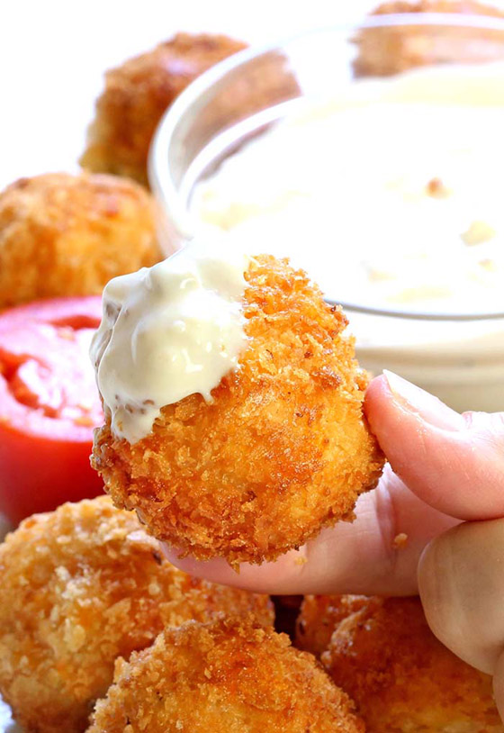 1. قطّعوا لحم الدجاج وتخلّصوا من الجلد والعظام وبعدها ضعوا الدجاج في وعاء كبير، وأضيفوا الصلصة الحارّة والفلفل والجبن والبصل الأخضر وقلّبوا المزيج، ثمّ شكّلوها إلى كرات بحجم كرة الغولف.