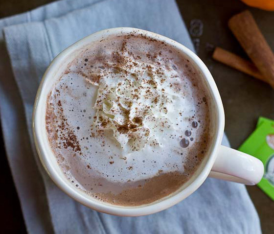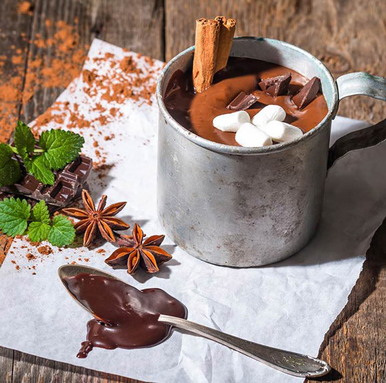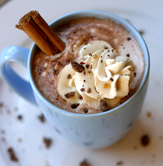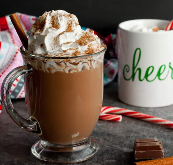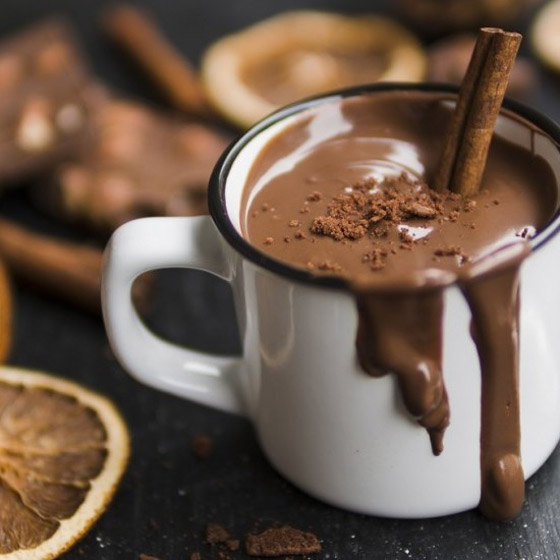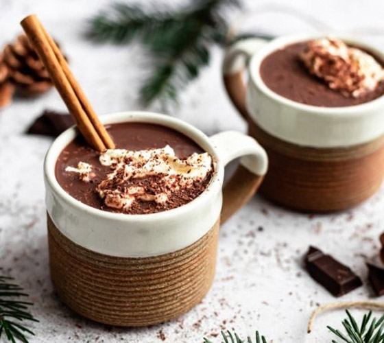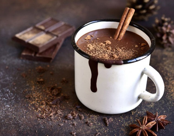 هوت شوكليت بالقرفة بسعرات حرارية أٌقل.. الهوت شوكلت من المشروبات الساخنة الغنية بطعم الشوكولاتة الرائعة واللذيذة، جربوا تحضيرها في البيت بسعرات حرارية أقل وبنفس الطعم الشهي. وقت الطهي: 20 دقيقة.. يكفي ل: 2 أشخاص.