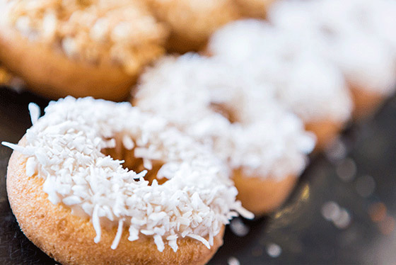 - جوز الهند: 50 غم (محمّص وغير محلّى، لطبقة الحلوى على الدونات).