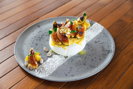 تزين بقطع التين الطازج والفراولة، أو أي نوع فاكهة، حسب الرغبة.