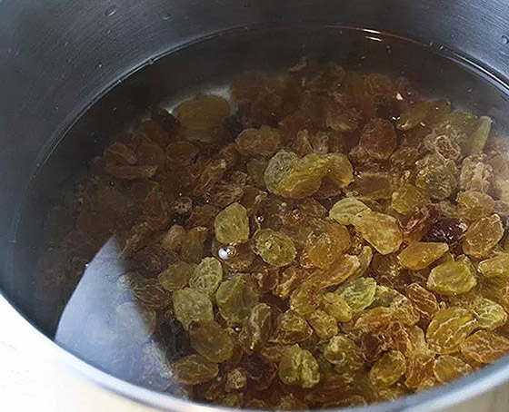 الطريقة: أضيفي مقدار كوبين من الماء، و150 غراماً من الزبيب في وعاء واغلي الماء مع ترك الزبيب في الماء طوال الليل، وفي اليوم التالي صفي الماء، وسخنيه على نار هادئة.