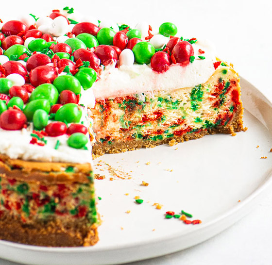 التشيز كيك هو مزيج بين الكيك والجبنة الكريمية، ويتم تزيينه بالحلوى الملونة باللونين الأخضر والأحمر على شكل شجرة الكريسماس. نُقدّم لكم طريقة تحضير تشيز كيك الكريسماس.