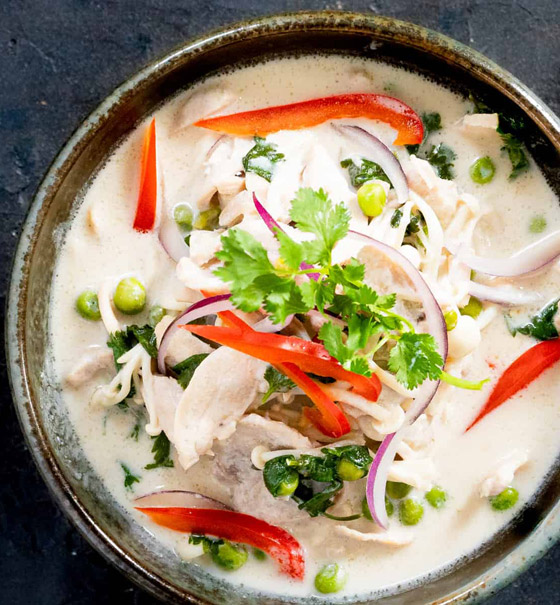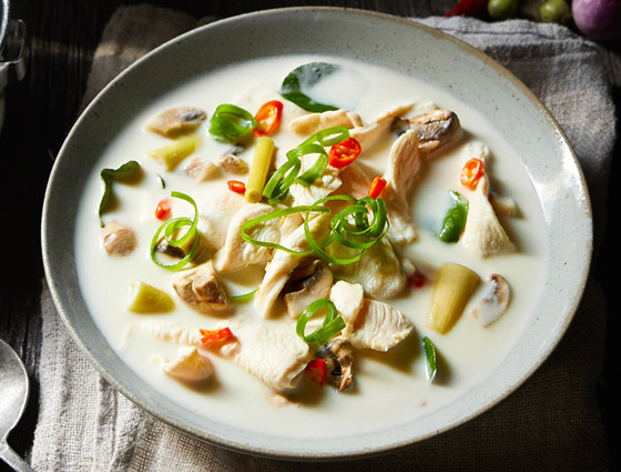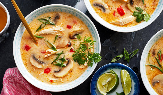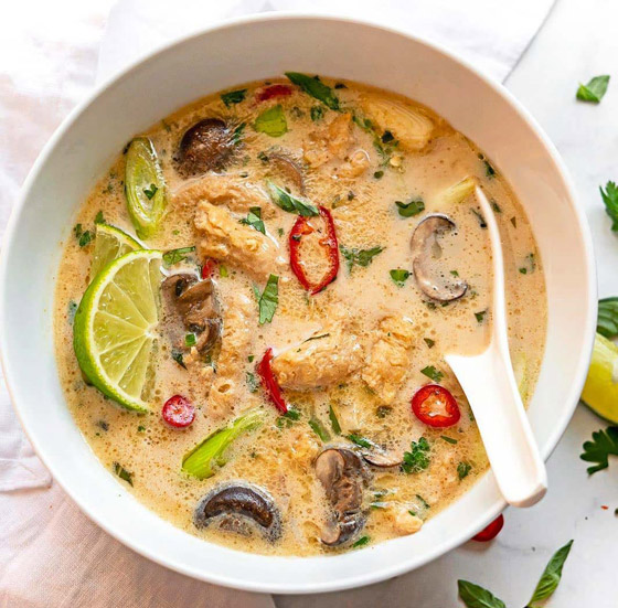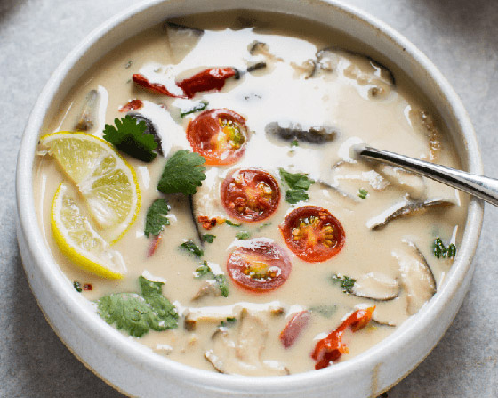 حساء الدجاج بجوز الهند من الأطباق الشهيرة في تايلاند، وهو مناسب للأعياد والمناسبات، حيث يمنحها جوز الهند الكريمي مع الزنجبيل والليمون، نكهة فريدة ولذيذة. نُقدّم لكم طريقة تحضير حساء الدجاج بجوز الهند.