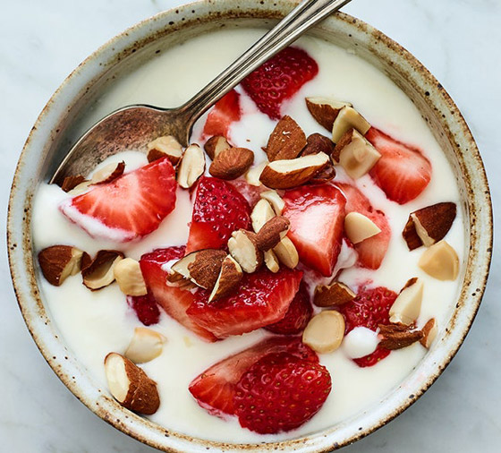 4. الزبادي اليوناني مع اللوز والتوت: إذا كنت مستعد لبذل مزيد من الجهد، فيمكنك خلط عدد من الأطعمة مثل الزبادي مع الفواكه مثل التوت. وتعتبر هذه الوصفة مثالية، فهي توازن بين البروتين والكربوهيدرات والدهون، فالكربوهيدرات موجودة في التوت واللبن، والبروتين في الزبادي ، والدهون في اللوز. وهذا يساعد في الحفاظ على توازن السكر في الدم ويمنع جسمك من الاستيقاظ أثناء الليل بسبب الحاجة إلى الجلوكوز.