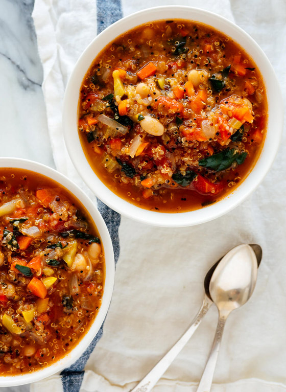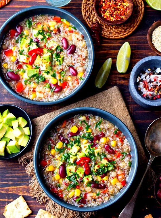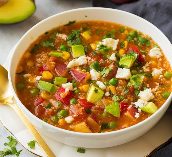 شوربة الكينوا بالخضار الصحية.. قدموا على سفرتكم اليوم وجبة سريعة ومليئة بالخضار الطيبة والصحية، قدموها ساخنة على سفرتكم. وقت الطهي: 60 دقيقة.. يكفي ل: 6 أشخاص.
