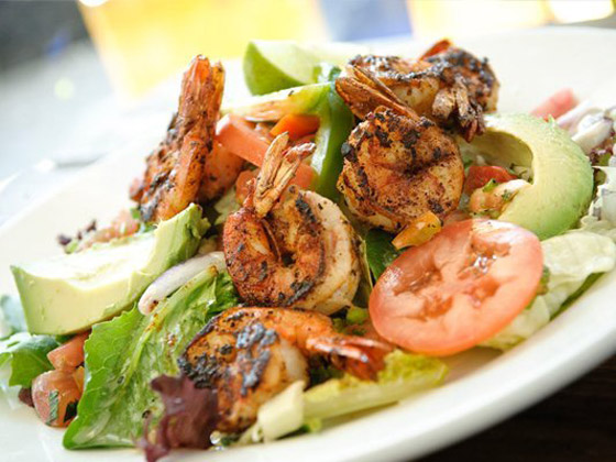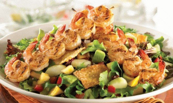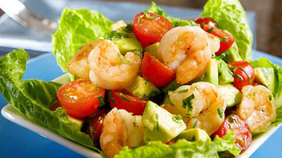 وفي الوقت نفسه ، يقطع الخيار والأفوكادو الى قطع 3/4 بوصة. يوضع الخيار والأفوكادو والثوم المفروم وأوراق النعناع المفروم والكزبرة في وعاء السلطة. يُسكب عصير الليمون وملعقة كبيرة من زيت الزيتون على السلطة ويُقلّب جيدًا. يعدل المذاق حسب الحاجة. بمجرد أن يبرد الروبيان إلى درجة حرارة الغرفة ، يضاف الى السلطة. يغطى ويبرد حتى يصبح جاهزًا للتقديم.
