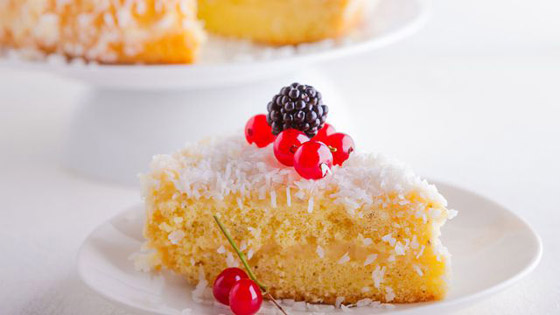 كيكة السميد مع جوز الهند .. قدمي على سفرتك وصفات الكيكات المميزة والشهية جداً، وشربيها بمزيج الشربات بطعم البرتقال الشهي، جربيها في مطبخك وشاركينا رأيك بالطعم .