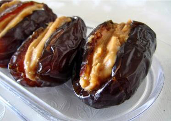 · يملأ التمر بزبدة الفول السوداني من الداخل.