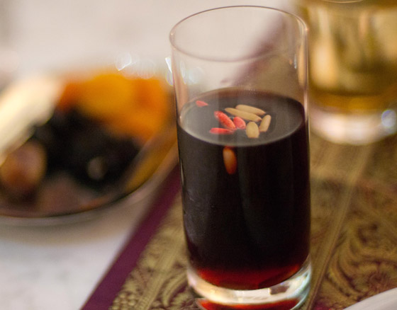 1. يُغسل الزبيب وينقع يوماً كاملاً، ثم يوضع في الخلاط، ويهرس جيداً، ثم يصفّى بمصفاة ناعمة.