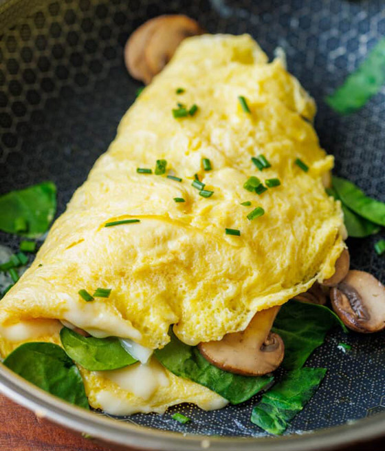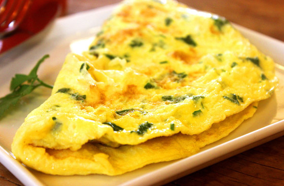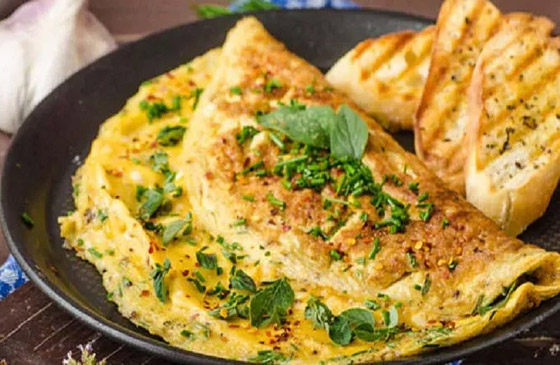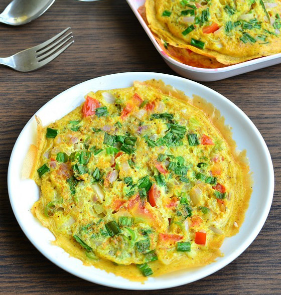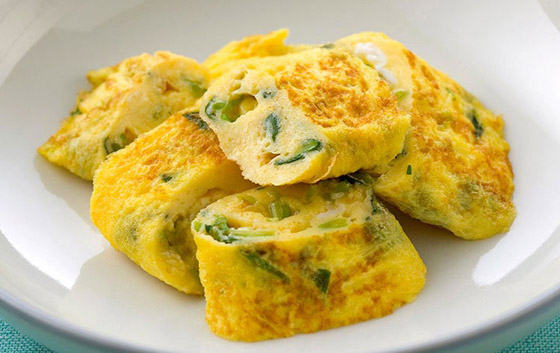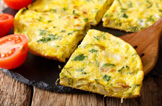 6. قطعوا العجة وقدموها إلى جانب السلطة الخضراء والخبز المحمص.