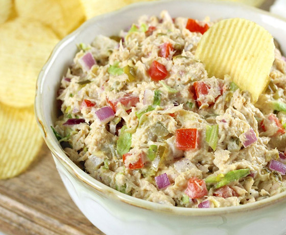 6. سلطة تونة بالمقرمشات: بينما قالت مورغان تشامبرلين، خبير في التغذية، إنها تفضل تناول التونة، الغنية بأوميغا-3، الذي يعزز وظائف المخ والأوعية الدموية، وأنها تحرص على مزج التونة مع المايونيز وزيت الأفوكادو والخضراوات المُخمرة (عادة الكيمتشي أو مخلل الشمندر أوالملفوف) والتوابل (الملح والفلفل والبابريكا و/أو الفلفل الحريف)، مشيرة إلى أنه يمكن تدعيم الطبق ببعض قطع البسكويت.