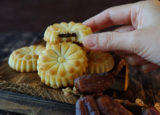 - الخطوة الثامنة: قطِّع العجينة على شكل كرات صغيرة، ثمّ ضع حشوة التمر فيها داخل كرة العجين، وأعد إغلاق الكرة مرّةً أخرى، ثمّ ضعها في القالب وافردها جيّداً مع الضّغط عليها قليلاً حتّى تأخذ شكل القالب.
