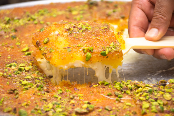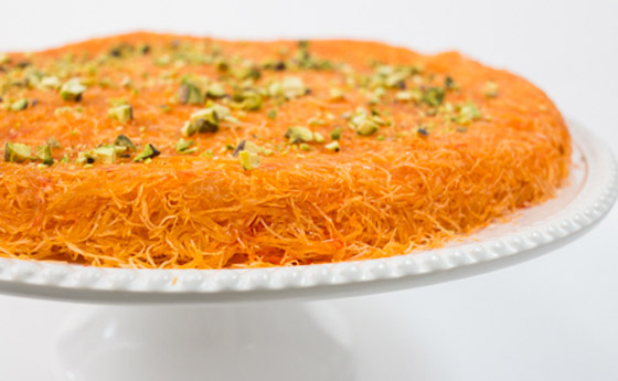 7. اسكبوه فوق الكنافة عندما يصبح ساخناً.
