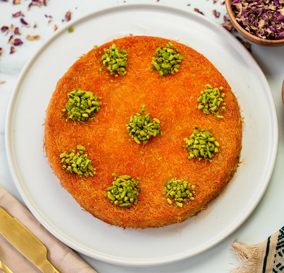 8. زينوا بالفستق الحلبي الناعم فوقها.