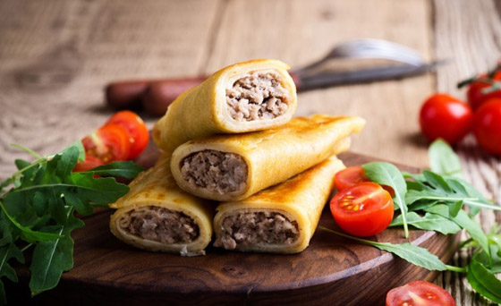 بان كيك اللحم... عجينة البان كيك بإمكانكم تحضيرها بالحشوة المفضلة لديكم، اخترنا لكم اليوم طريقة عمل بان كيك اللحم المفروم الطيب، قدموه على سفرة الغداء ساخناً أو دافئاً. وقت الطهي: 60 دقيقة.. يكفي ل: 4 أشخاص.