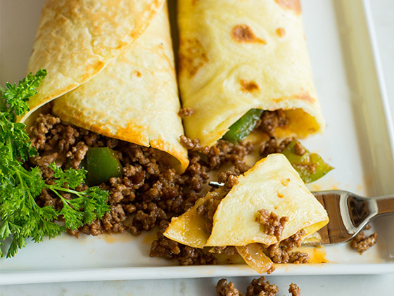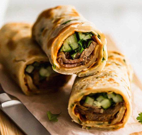 11. قوموا بلف شريحة البان كيك على شكل أسطوانة ونصف دائرة.