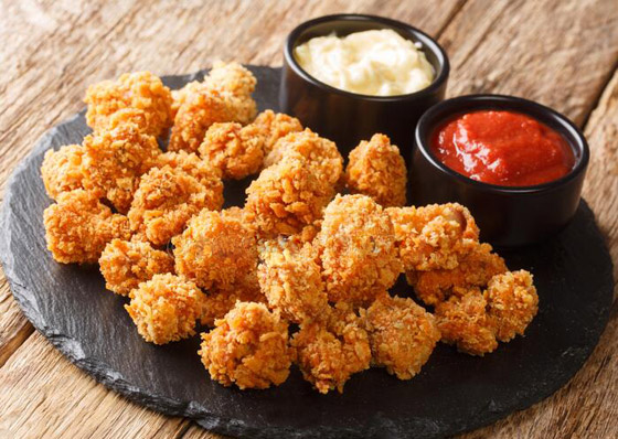 بوب كورن دجاج بالصلصة... قدموا على سفرتكم طبق من الدجاج المتبل بالبهارات المميزة والمغطى بطبقة مقرمشة ولذيذة يعشقها الأطفال خاصة، جربوا بوب كورن الدجاج على طريقة مميزة من مطبخ شايف وقدموه بجانب الصلصة الطيبة واللذيذة. وقت الطهي: 60 دقيقة.. يكفي ل: 4 أشخاص.