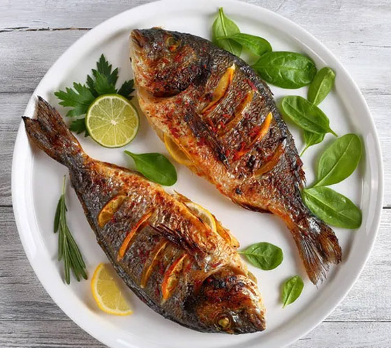 3. السمك: الأسماك الزيتية أو الدهنية مثل السلمون غنية بالأحماض الدهنية أوميغا 3، وكذلك تحتوي الأنشوفي والرنجة على نوعين من أحماض الأوميغا 3 المرتبطين بالتخفيض من مستويات الاكتئاب وهما حمض الدوكوساهيكسانويك وحمض ايكوسابنتانويك. إضافة لعملها على التخفيف من وطأة وأعراض الاكتئاب فإن لأحماض الأوميغا 3 تأثيراً إيجابيا على صحة الدماغ وتطوره.