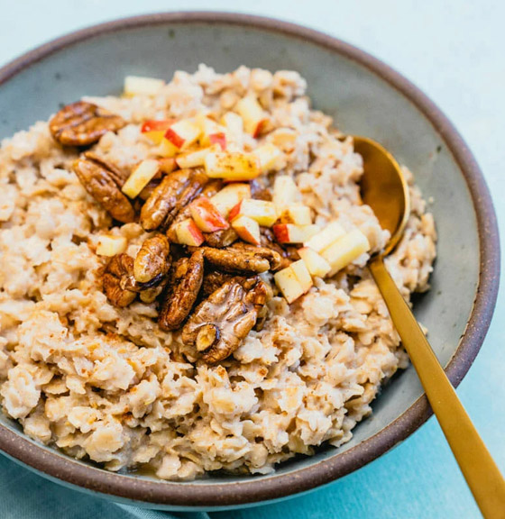 4. الشوفان: يشكل الشوفان وجبة شهية للإفطار حيث تتعدد طرق تناوله من خلطه مع الحليب خلال الليل وتناوله في الصباح إلى ألواح الجرانولا متعددة النكهات. فهو أحد الحبوب الكاملة المملوءة بالألياف. فكوب واحد من الشوفان بوزن 81 غراما يزود جسمك ب 8 غرامات من الألياف، التي تساعد على تنظيم مستوى السكر في الدم ما يحسن الحالة المزاجية وابطاء هضم النشويات ما يساعد على الحفاظ على نشاطك وطاقتك لمدة أطول.
