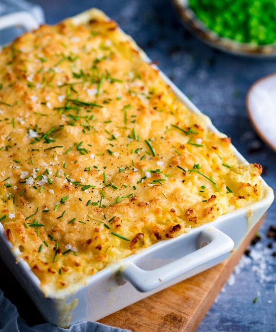 7. أدخلوا الطبق للفرن على 190 درجة لمدة 20 دقيقة حتى تتحمر وتصبح هشة.