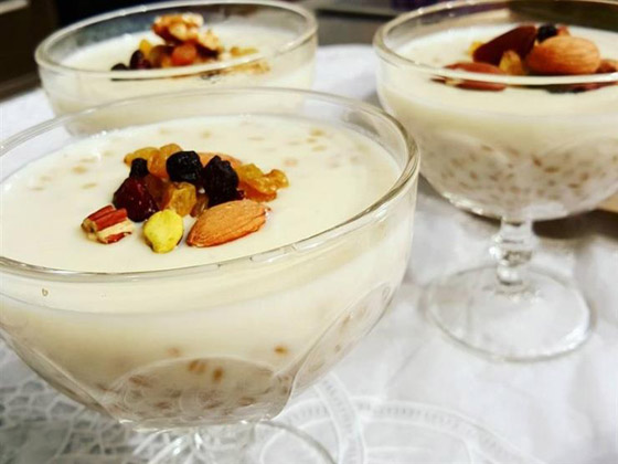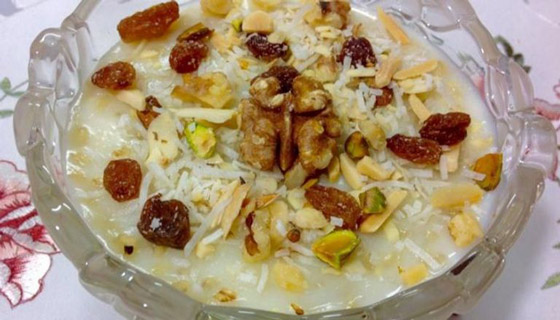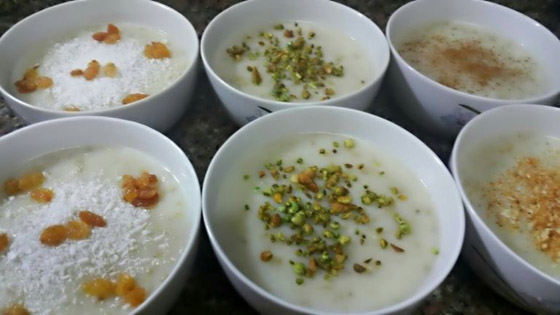 وضع العاشوراء في أطباق التقديم وتزيينها بالمكسرات حسب الرغبة وبالهناء والشفاء.