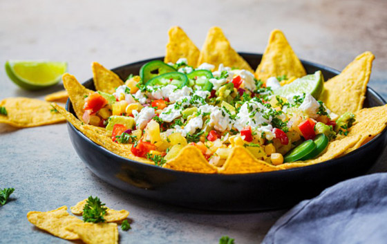 سلطة الناتشوز بالروب... نقدم لكم وصفات مميزة من المطبخ المكسيكي، جربوا سلطة الناتشوز المعروفة بطعمها الرائع والطيب، وقدموها بصوص اللبن الزبادي الشهي، جربوا السلطة وشاركونا وصفتكم المميزة. وقت الطهي: 20 دقيقة.. يكفي ل: 4 أشخاص.