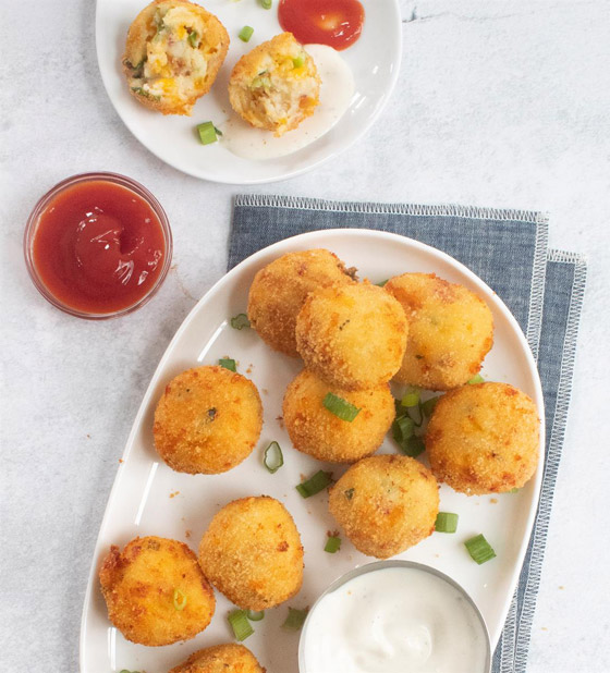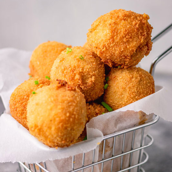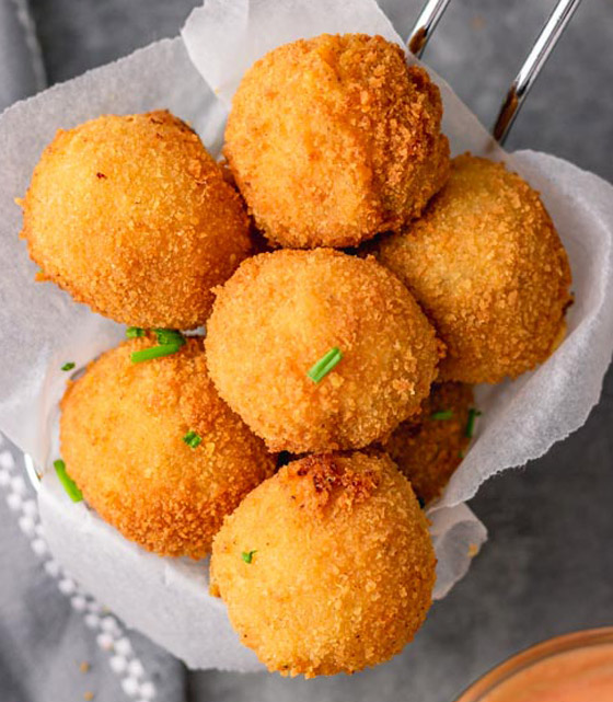 كرات البطاطس المشوية... وصفات عديدة ومتنوعة من البطاطس المهروسة يمكنكم تحضيرها في مطبخكم، جربوا وصفة ولا أسهل منها من كرات البطاطس المشوية بالفرن بالطعم اللذيذ والخفيف. وقت الطهي: 40 دقيقة.. يكفي ل: 4 أشخاص.