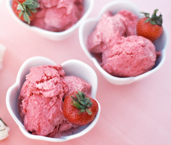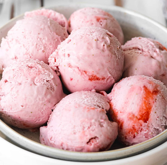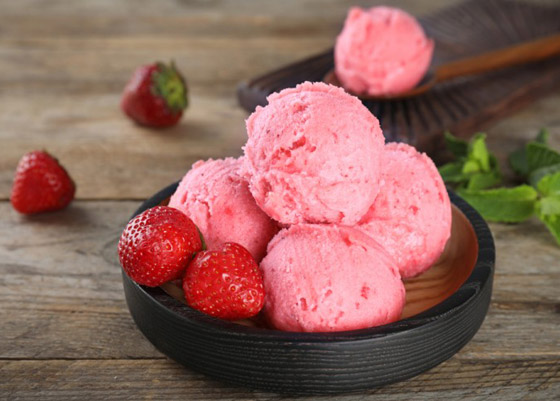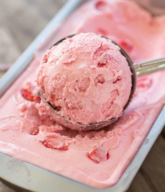 5. وزعوا الآيس كريم في أكواب التقديم وزينوا بحبات الفراولة الطازجة، ثم قدموه.