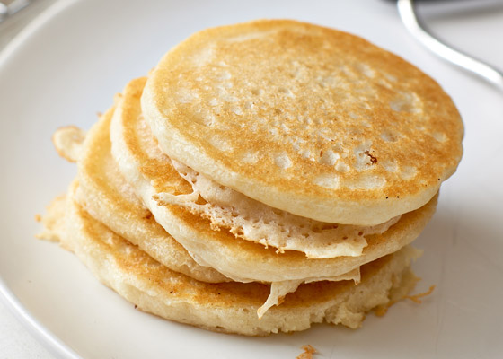 5. اسكبوا مغرفة من عجينة البان كيك واتركوها حتى تتحمر أطرافها وتظهر الفقاعات على وجهها من ثم اقلبوها.